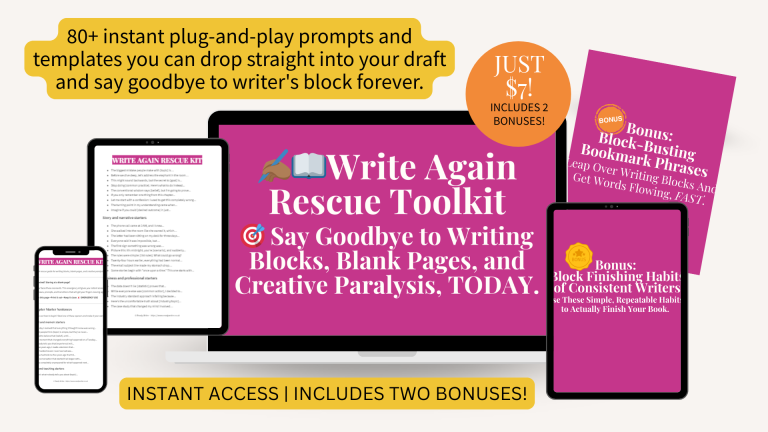 80+ plug-and-play prompts and sentences to help smash through writer’s block in minutes. Restart your momentum and say goodbye to writer’s block forever.